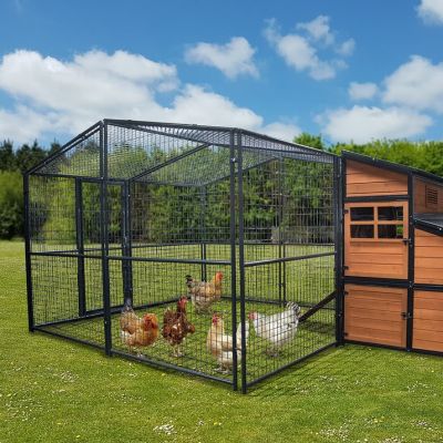 Verkosta valmistetut katto- ja sivuelementit pitävät petolinnut ja ketut poissa. Aidattu ulkotarha suojaa kanoja myös ympäröivältä tieliikenteeltä.