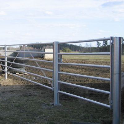 Turvallista kestävyyttä. Aitaelementit on tehty kokonaan halkaisijaltaan 43 mm:n putkesta. Vahvan rakenteen ansiosta aitaelementtejä voidaan käyttää muun muassa talleilla rehupöydän sulkemiseen. Jousikuormitettu lukkosalpa.