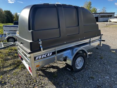 Erittäin vahva perävaunu. Valmistettu upposinkitystä metallilevystä, jossa on HDG-pinnoite. Metallilevy on valmistettu Suomessa kestämään pohjoismaisia olosuhteita. Kestävä jousitus Knott (Saksa) 2x3-lehtisellä jousella ja vesitiiviillä Aspöck (Itävalta) pyörän navoilla. Säänkestävät sähköjärjestelmä ja valot. Vesitiivis vanerilattia, jossa on liukastumaton pintaviimeistely (Suomi). Epäilemättä paras hinta-laatusuhde markkinoilla!