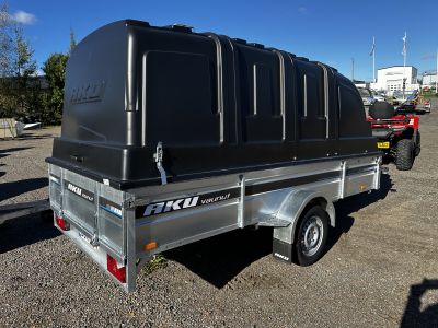 KuvausErittäin vahva perävaunu kokonaan hitsatulla rungolla, joka on valmistettu tarkkuusluokan laserleikatuista osista. Erikoisvahvat laidat. Etu- ja takalaidat on valmistettu upposinkitystä metallilevystä. Metallilevyssä on HDG-pinnoite, joka on valmistettu Suomessa kestämään pohjoismaisia olosuhteita. Kestävä jousitus 2x4 -lehtisellä jousella, öljytäytteisillä iskunvaimentimilla ja vesitiiviillä pyörän navoilla Knott (Saksa). Säänkestävät sähköjärjestelmä ja valot Aspöck (Itävalta). Vesitiivis vanerilattia, jossa on liukastumaton pintaviimeistely (Suomi). Epäilemättä paras hinta-laatusuhde kokonaan hitsatuista vaunuista markkinoilla!