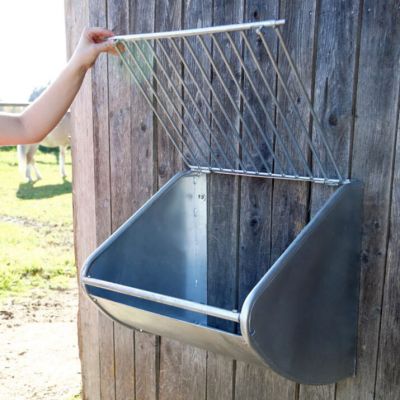 • Vähemmän hukkaa: Ritilä ja suojatut sivut pitävät heinän paikallaan, eikä se pääse tallautumaan tai tuhlaantumaan.