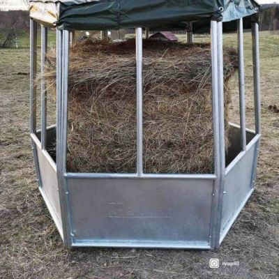 Katettu kuusikulmainen ruokintahäkki • Tiiviit lohkot • Pressukatto • 12 ruokintapaikkaa – leveys 41,5 cm • Sisämitat: min. 165 cm, max 195 c.. Lue lisää >>