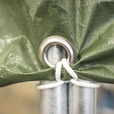 Ruokintahäkissä on neljä osaa ja 12 päällystettyä jalaskaarta, jotka asennetaan yhteen paikan päällä kotonasi. Ruokintahäkki toimitetaan terästelineessä. Mukana tulevat kupumutterit, pressukatto ja nippusiteet.