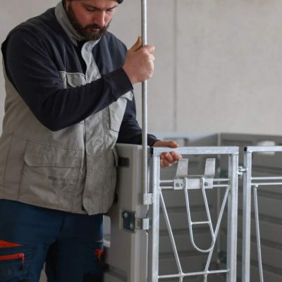 Asennustanko on keskeinen liitospiste, joka pitää paneelit yhdessä. Sen avulla karsinan voi koota ja purkaa nopeasti ilman työkaluja. Tanko on suunniteltu kestämään päivittäistä käyttöä ja mahdollistaa helpon muutoksen yksittäisistä vasikkakarsinoista ryhmäkarsinoiksi.