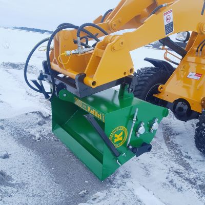 Kellfrin eteen asennettava hiekoitin, jossa adapteri Euro-kiinnikkeestä kolmipistekiinnikkeeseen • Työleveys 1,1 metriä – tehokas ja kattava levity.. Lue lisää >>